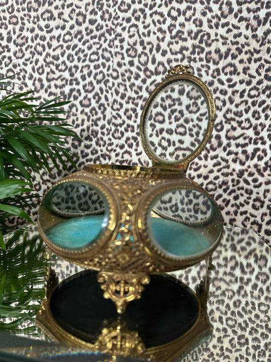 Gold Filagree Jewelry Box with Blue Lining