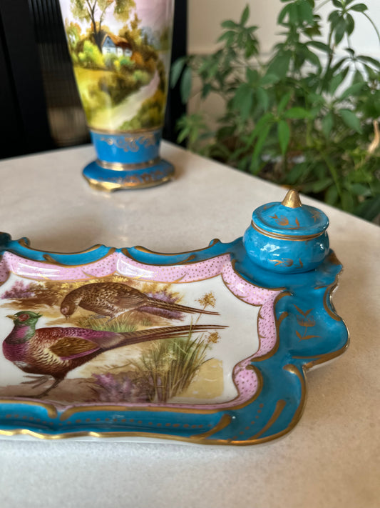 French Imperial Limoges Porcelain Double Inkwell