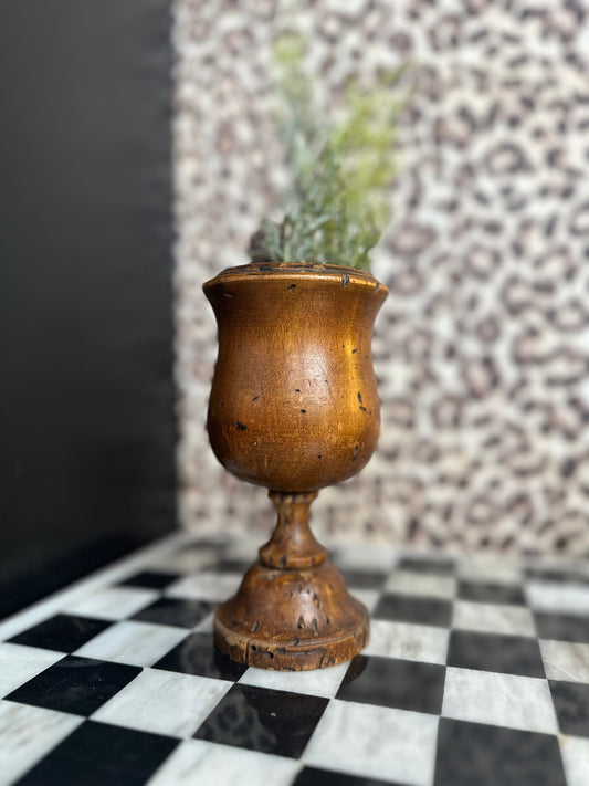 Italian Turned Wood Mortar/Chalice – Aged Patina & Insect Wear
