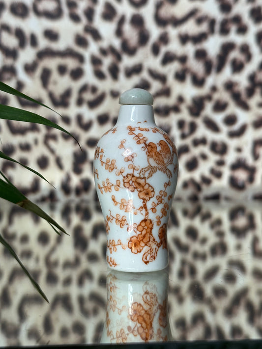Famille Rose Porcelain Snuff Bottle with Jade-Tipped Stopper