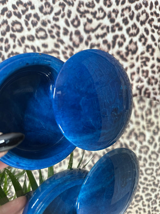 Ducceschi Volterra Blue Alabaster Trinket Box Swivel Top Hand Carved In Italy