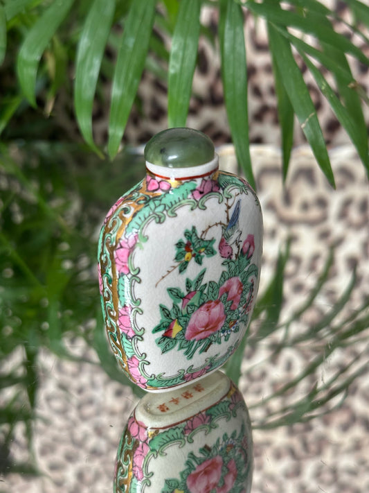 Rose Medallion Snuff Bottle (2 Women Figures)