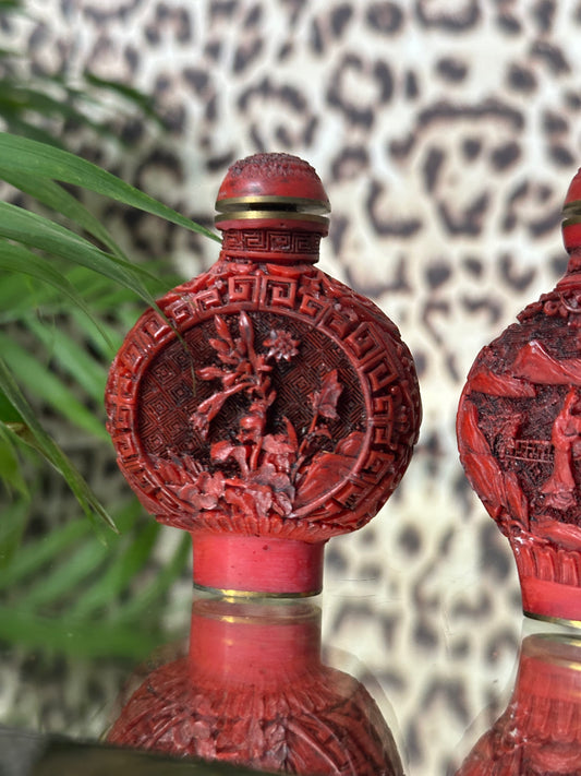 Sold outPair of Cinnabar Snuff Bottles